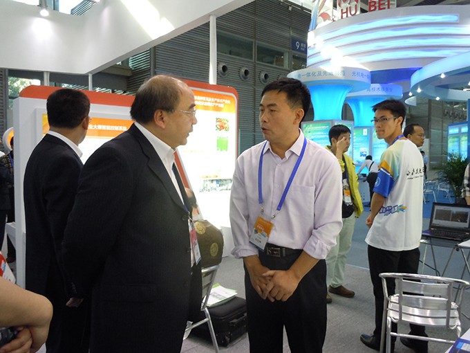 第18届北京“科博会”上国务院发展研究中心主任李伟(中)参观我公司科技成果展示
