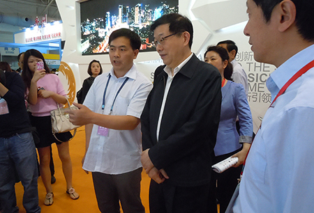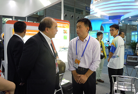 第16届深圳“高交会上四川科技厅厅长刘东(左一)参观我公司科技成果展示