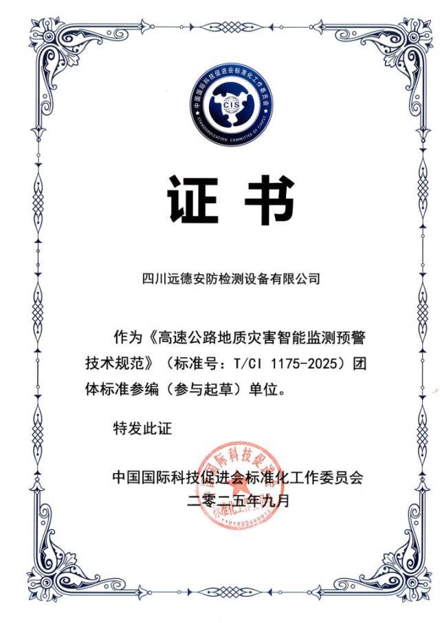 《高速公路地质灾害智能监测预警技术规范》(标准号TCI1175-2025)团体标准参编(参与起草)